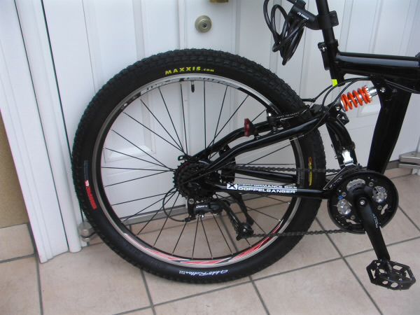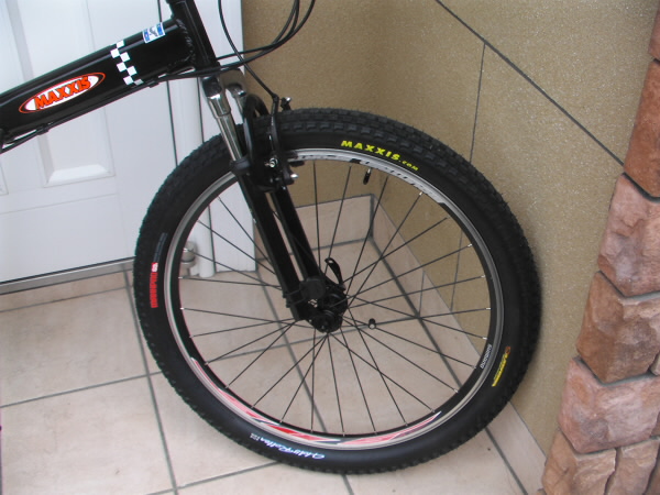 肝心の走行性能ですが、純正のブロックタイヤからさほど漕ぎが軽くなった訳ではありませんが、2.4の太いタイヤで外観的には大満足です。